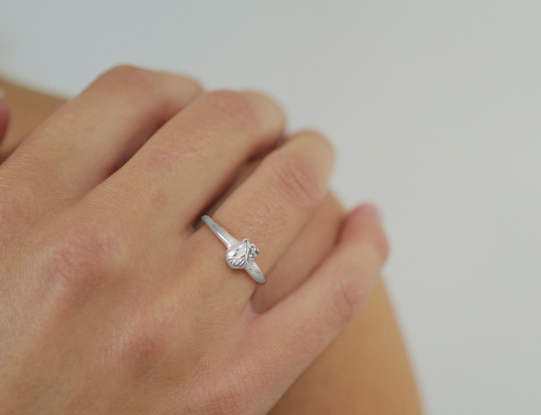 Timeless and elegant silver ring featuring a sculpted human heart design, embodying strength and emotion.