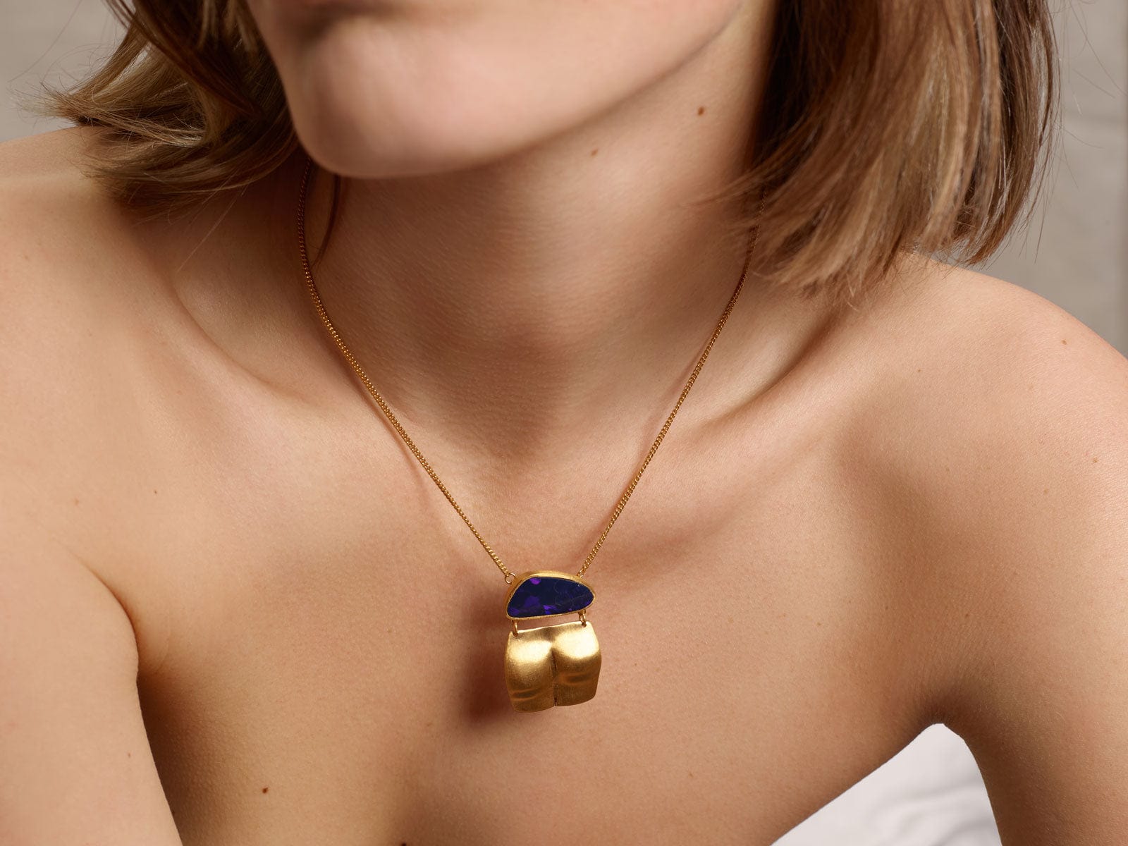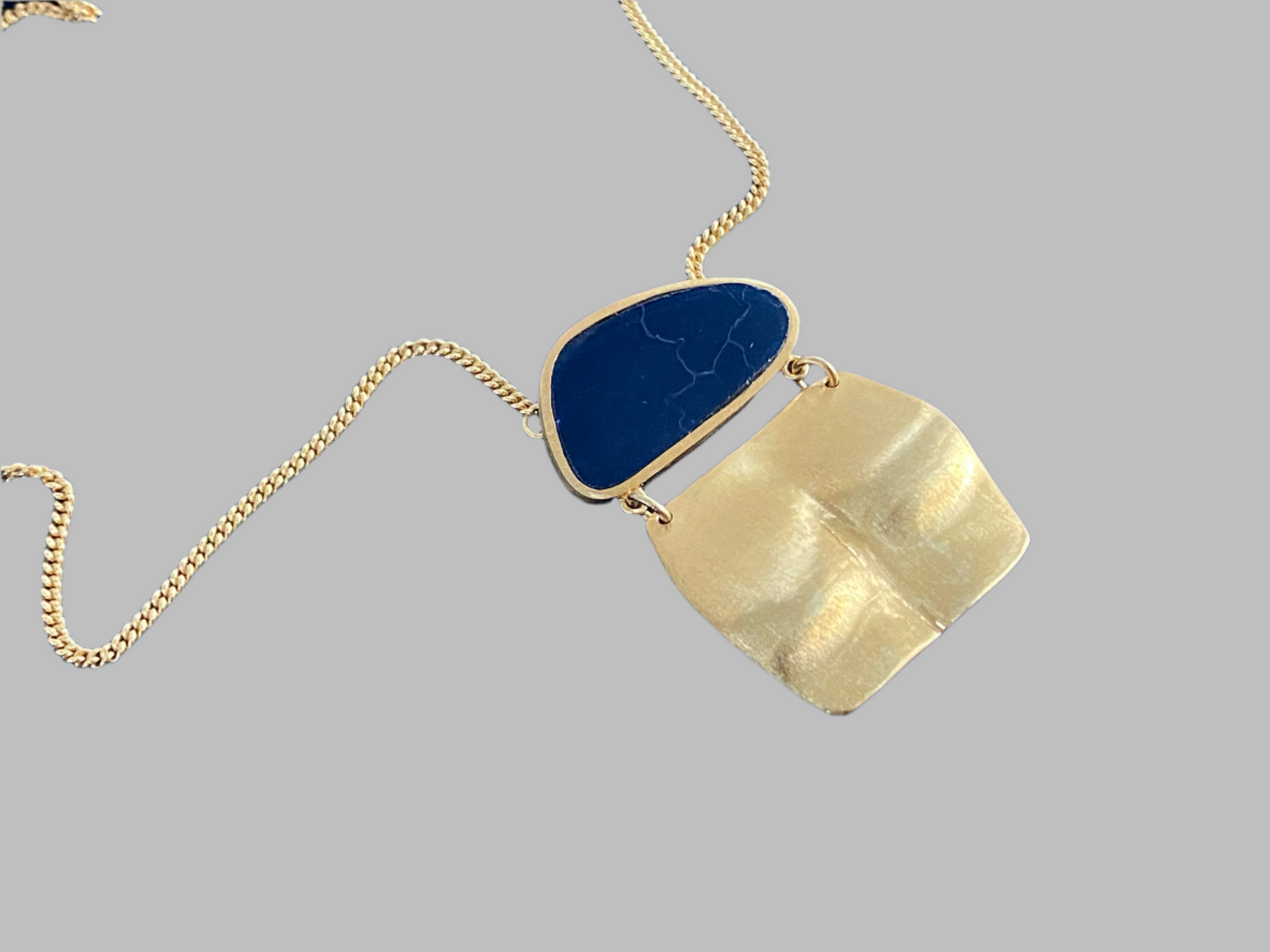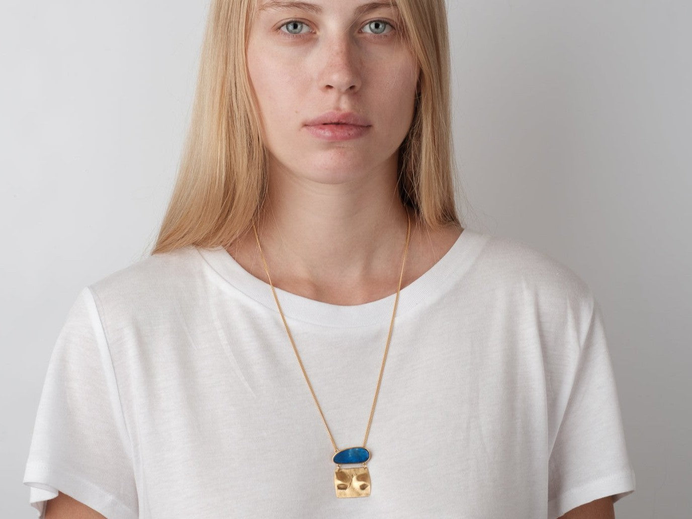 Step into the extraordinary with this sculptural treasure adorned with Cobolt blue enamel The Plein Ciel necklace is crafted by hand in 925 silver base with 18K gold plating .