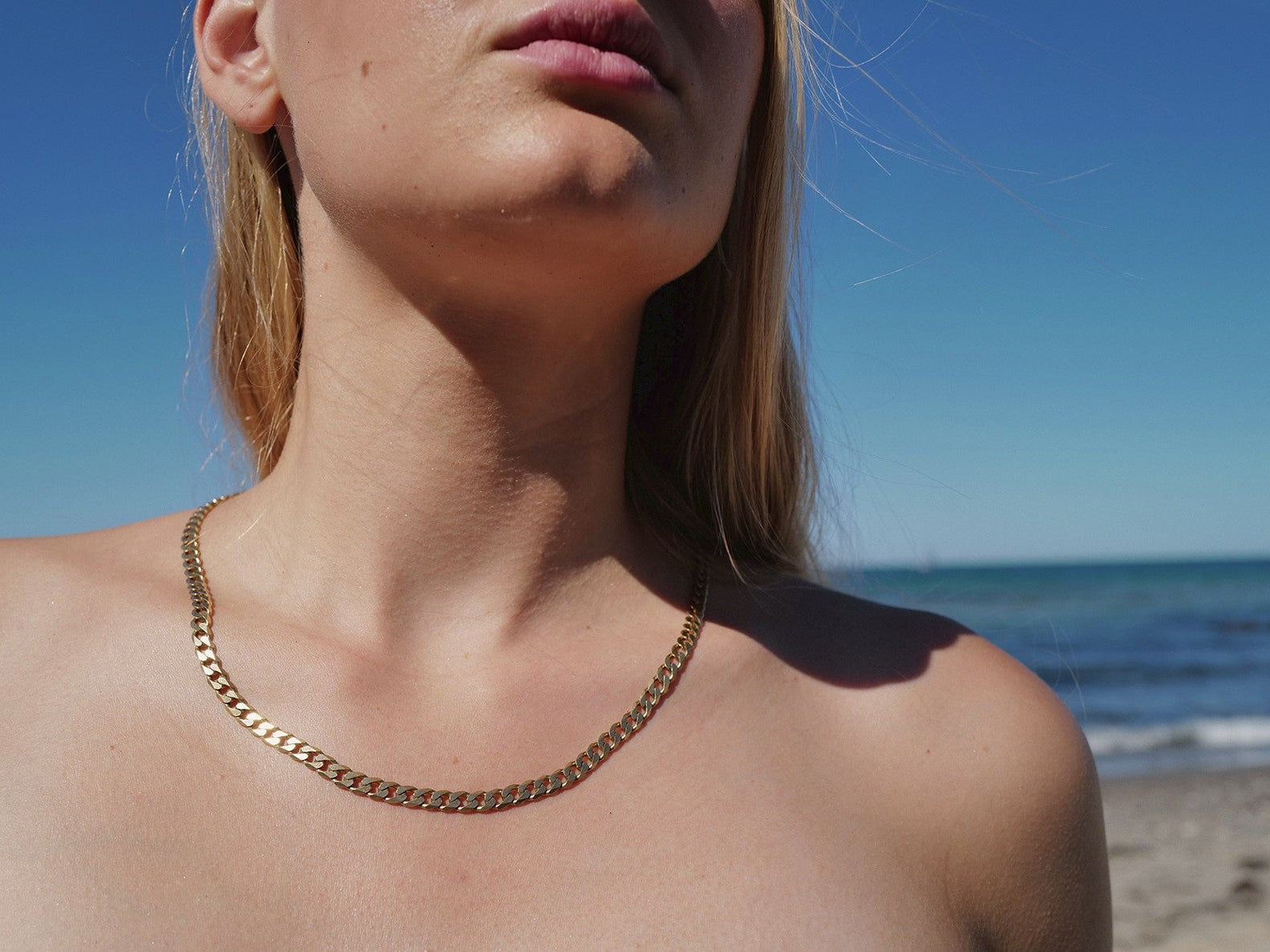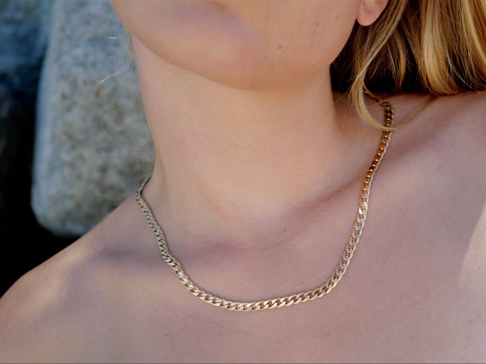 Solid silver diamond-cut curb chain, 18k gold-plated 925 silver.
