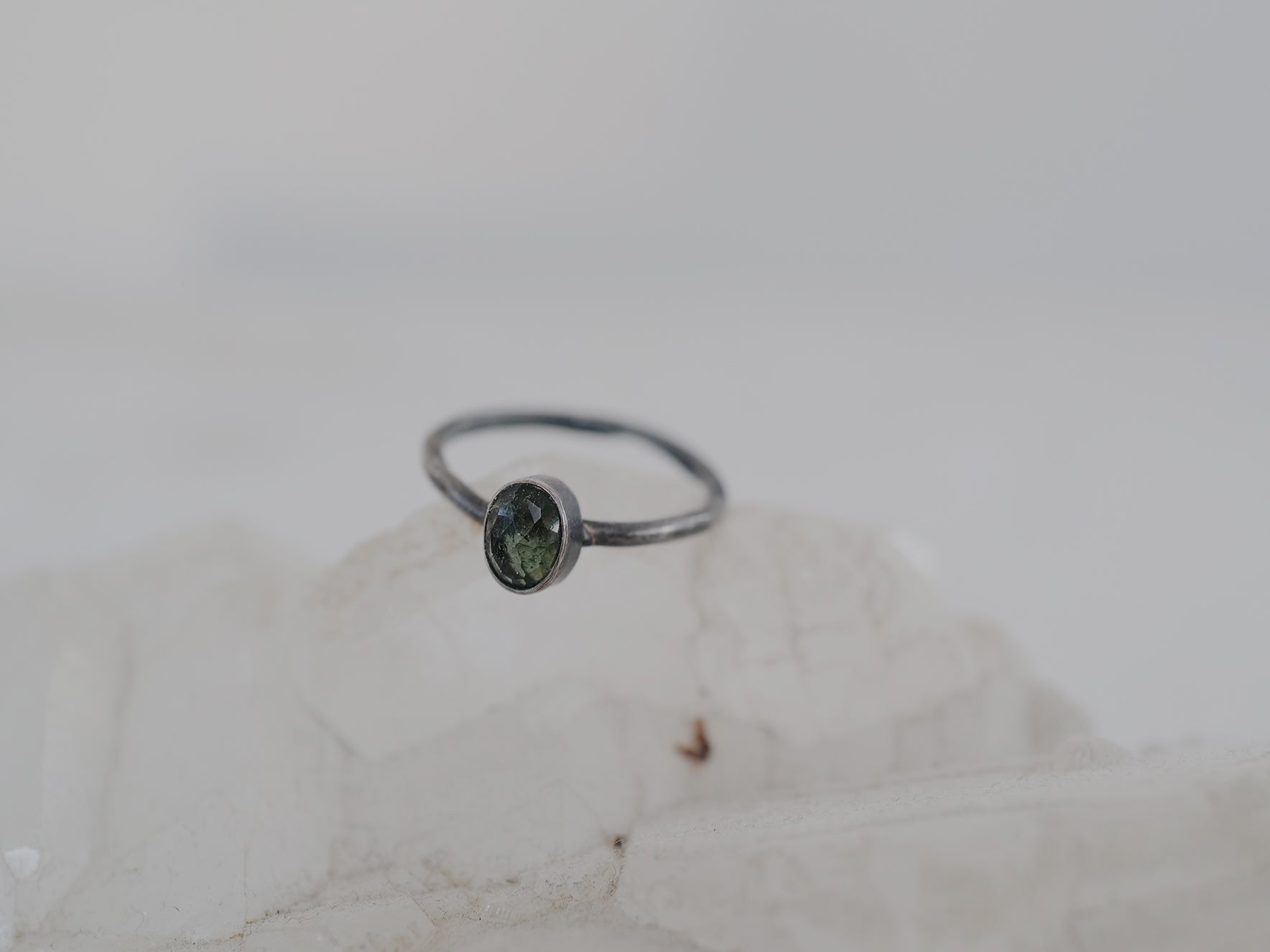 Unique organically shaped ring handcrafted in fine 925 silver with a green tourmaline.