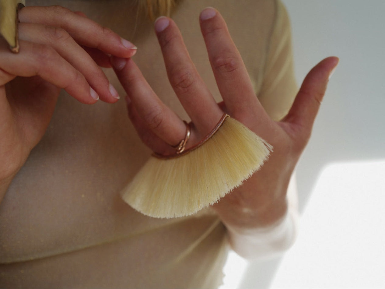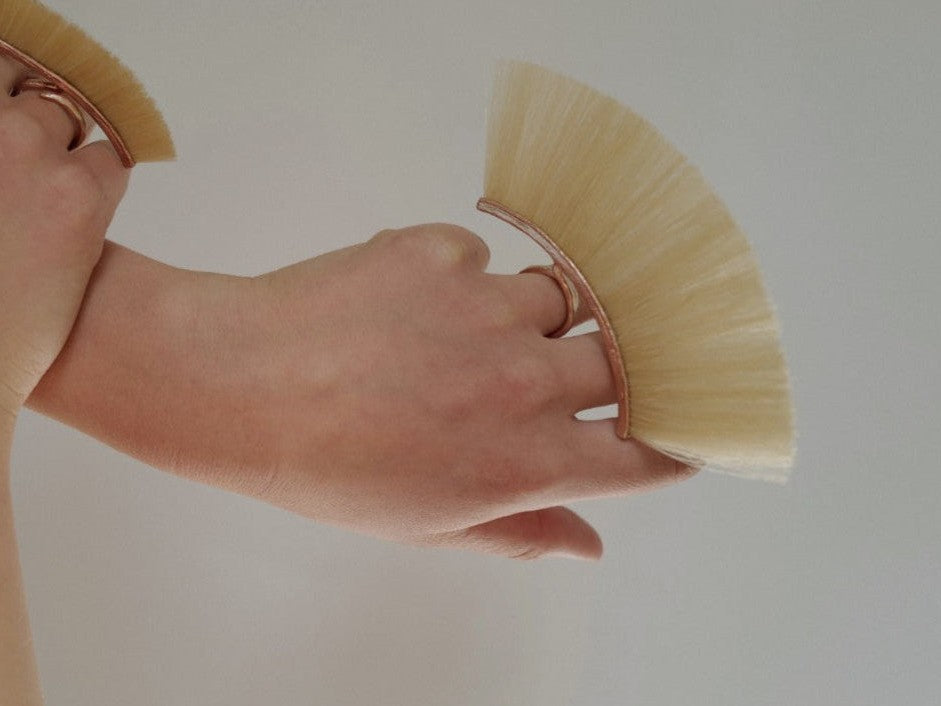 Crafted in silver-plated bronze, it fans out with soft, blonde natural horsehair — each strand catching the light with quiet movement.