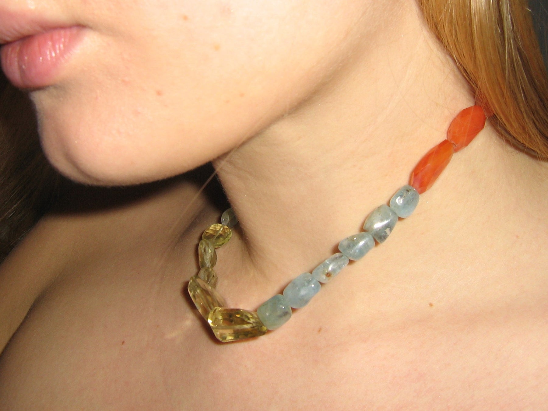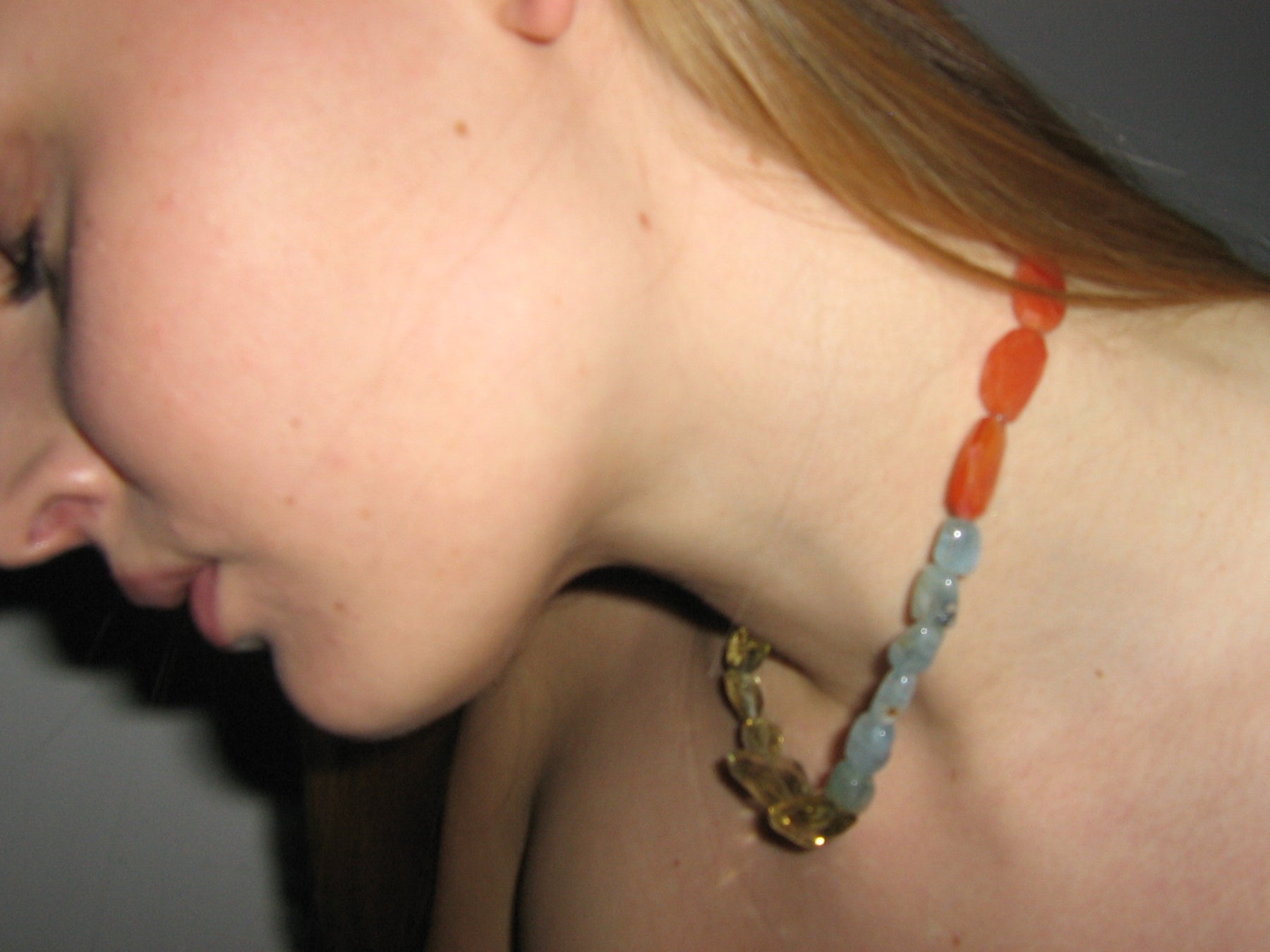 Stones: Pink Opal, Carnelian,Lemon Topaz, and Aquamarine.