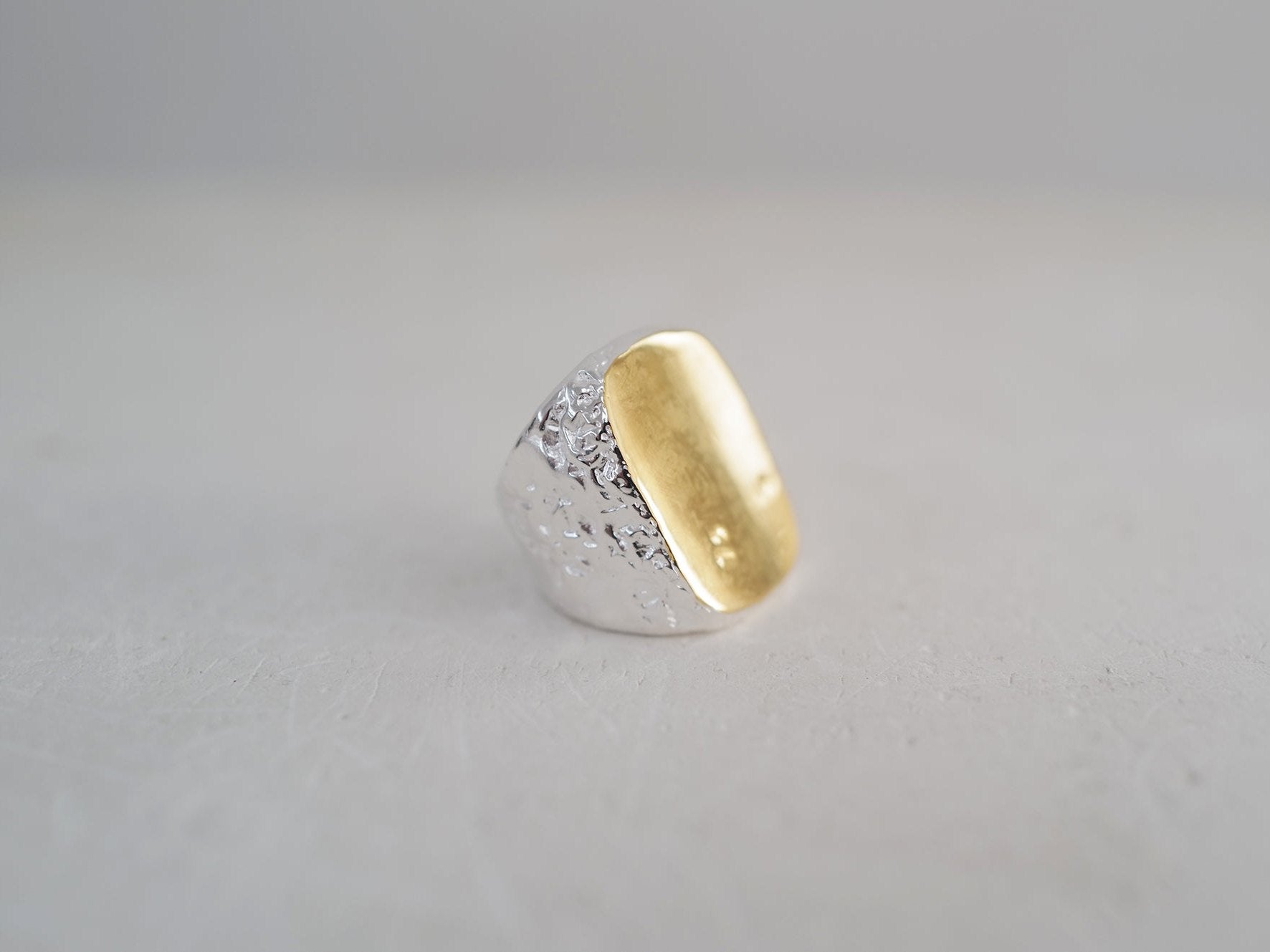 The liquid version of our Myth ring is crafted in sterling silver with 18-karat gold plating .