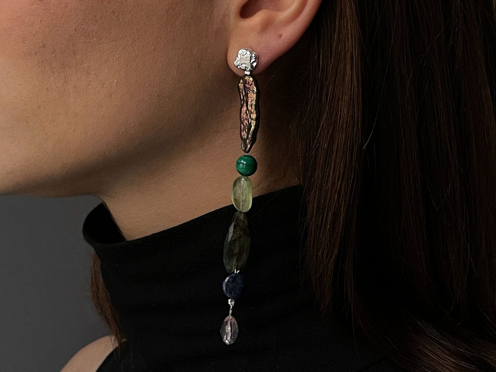 Pearl and gemstone single earring (one-of-a-kind)