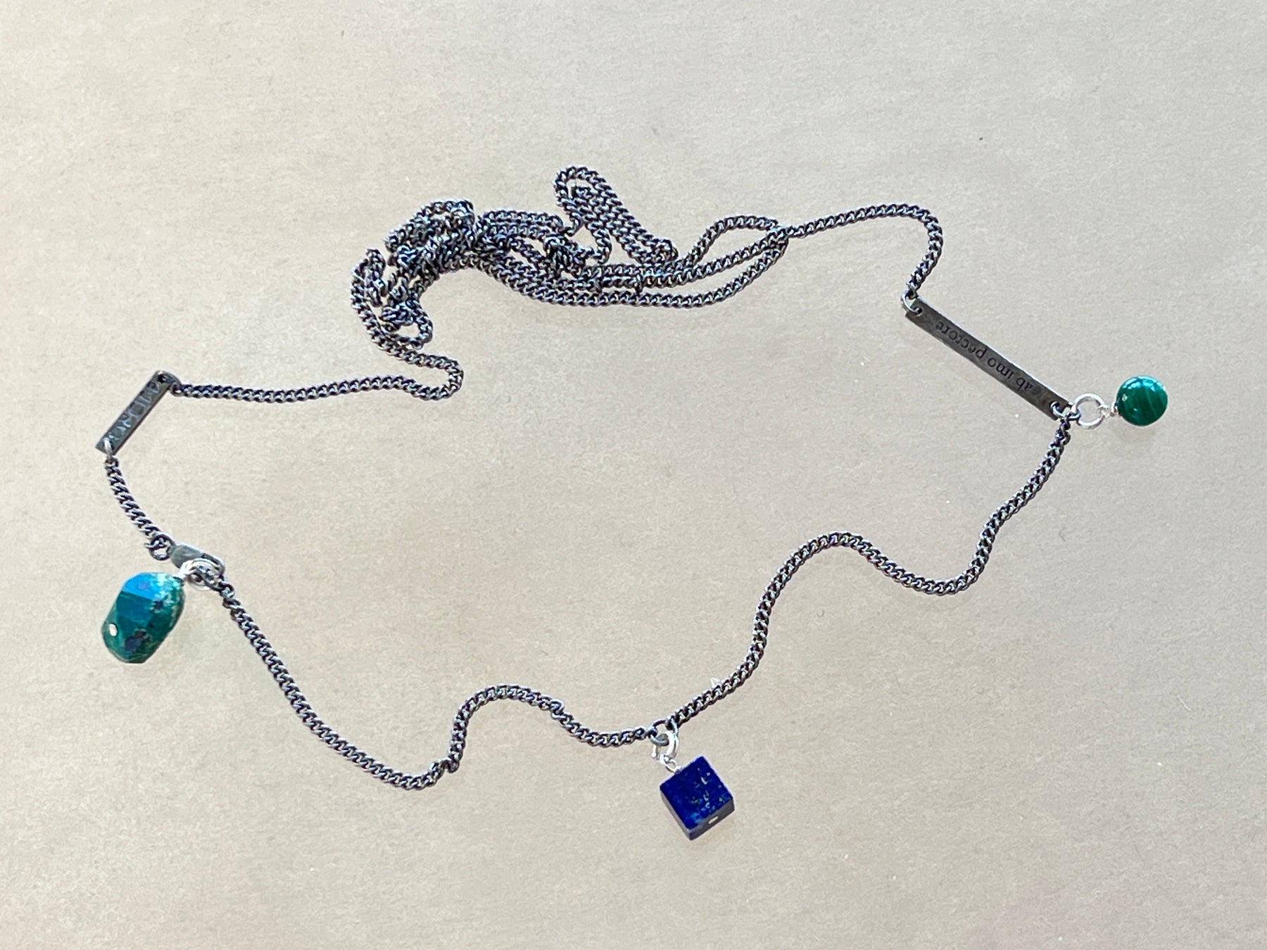 925 Sterling Silver and black plated chain with Chrysocolla and Lapis.