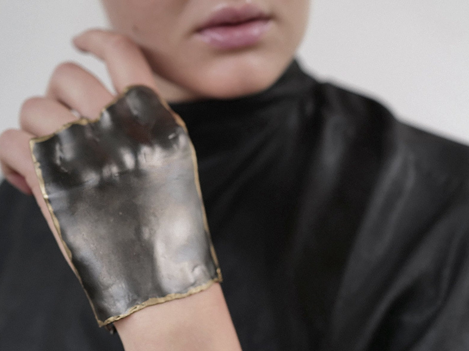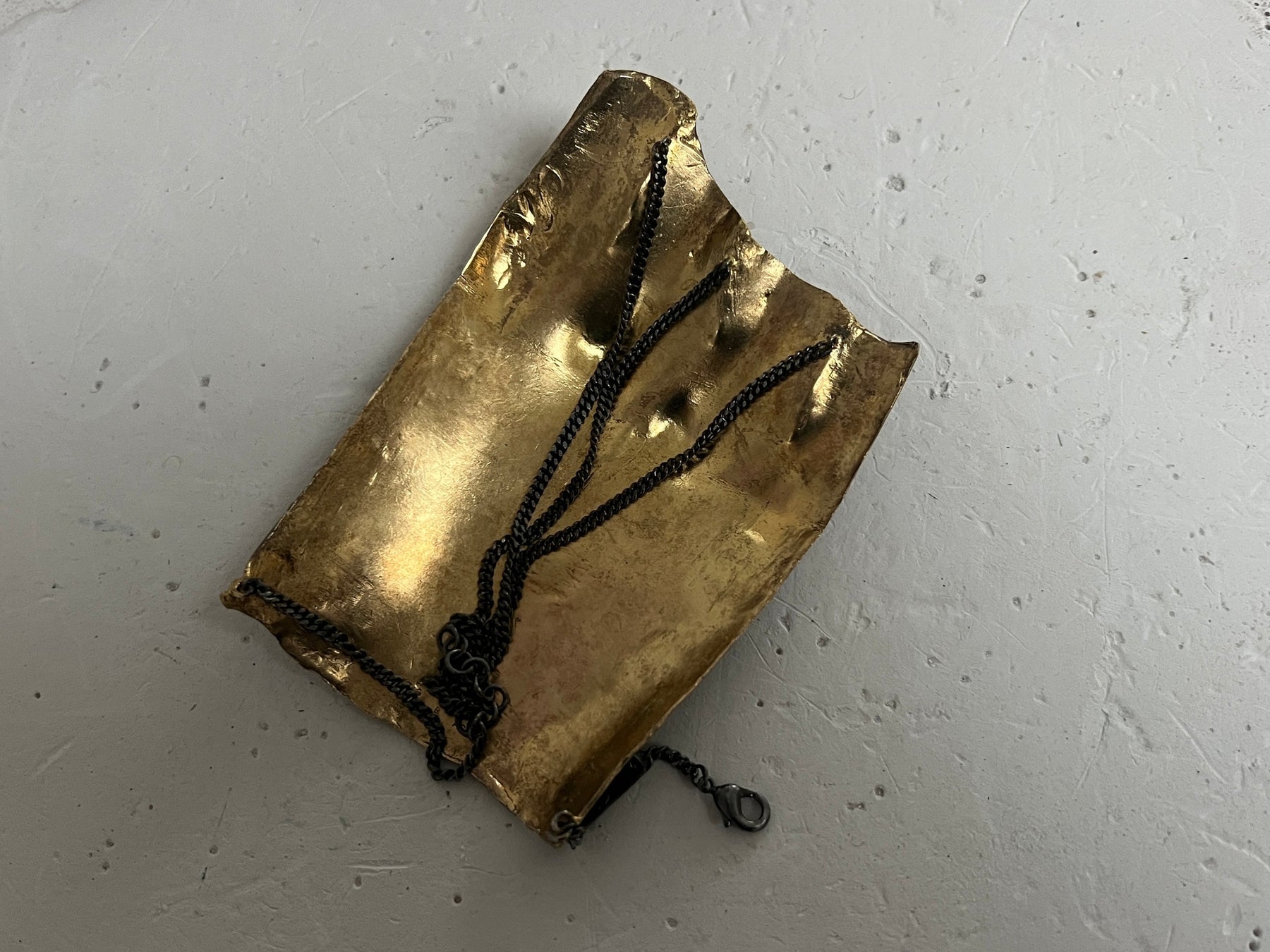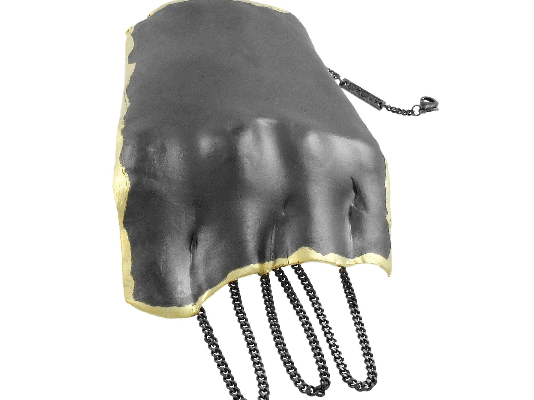 Sculpted by hand and cast in 18K gold and Rhutenium plated bronze.