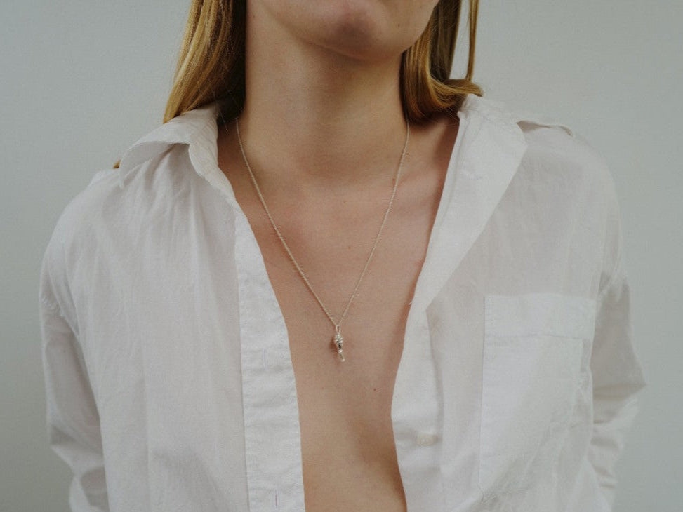 A sculpted form in sterling silver — fluid, imperfect, alive.