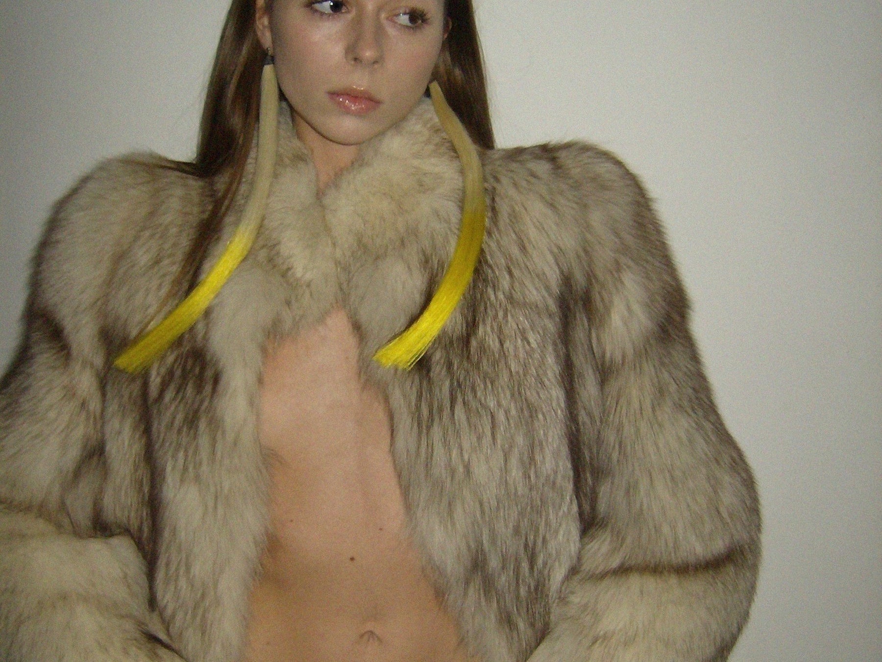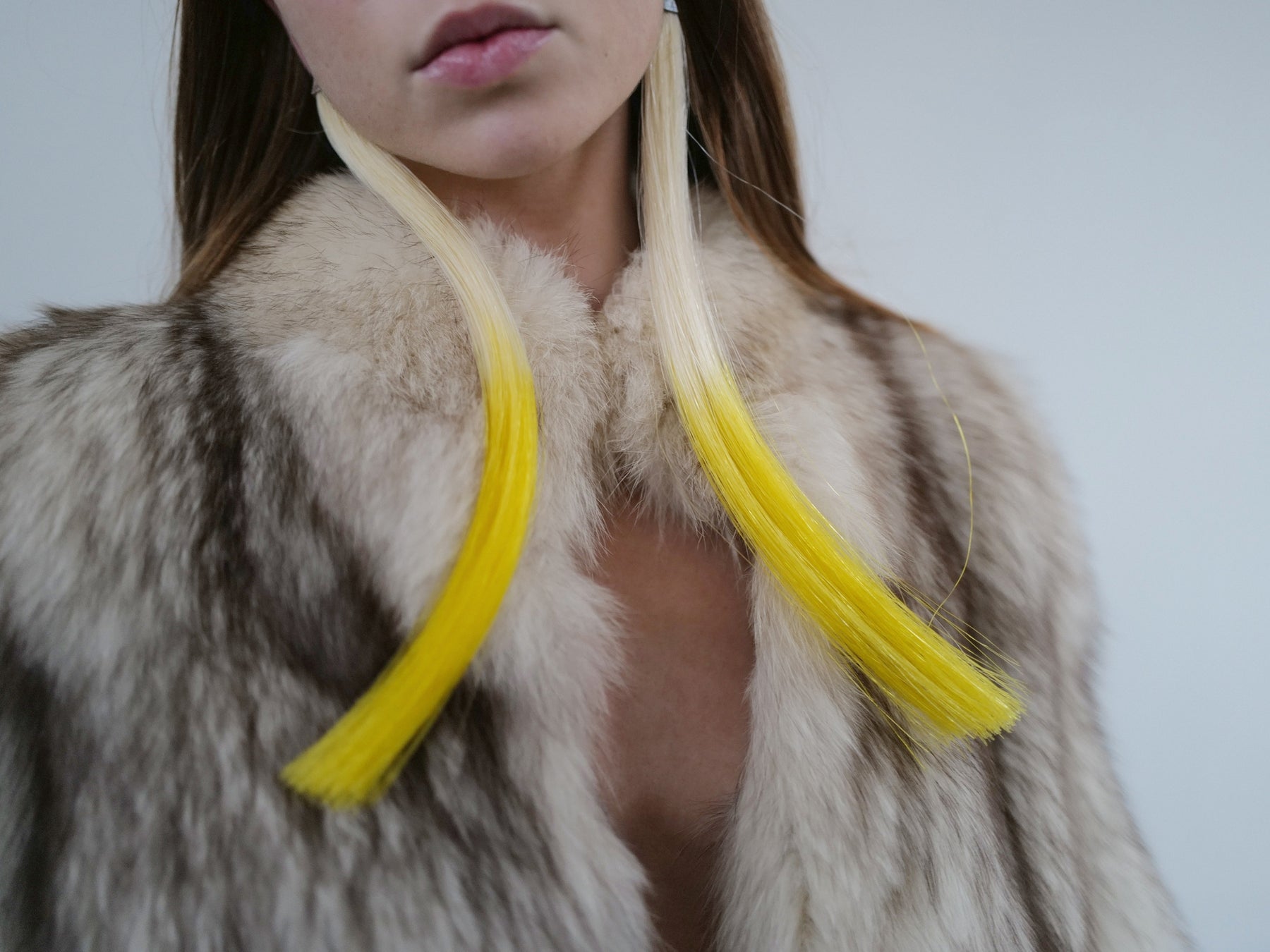 Melting into hair and skin, this earring blurs the line between adornment and self.