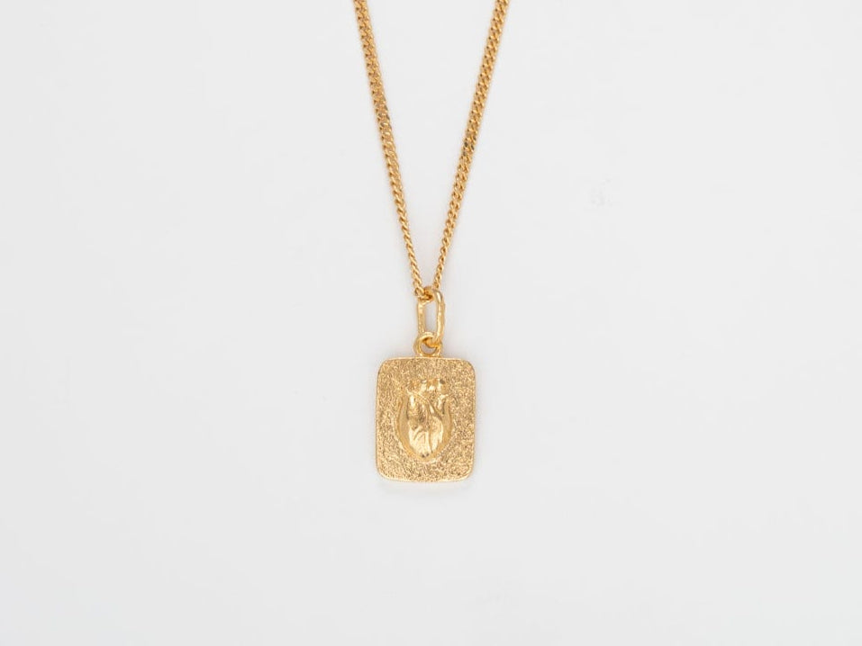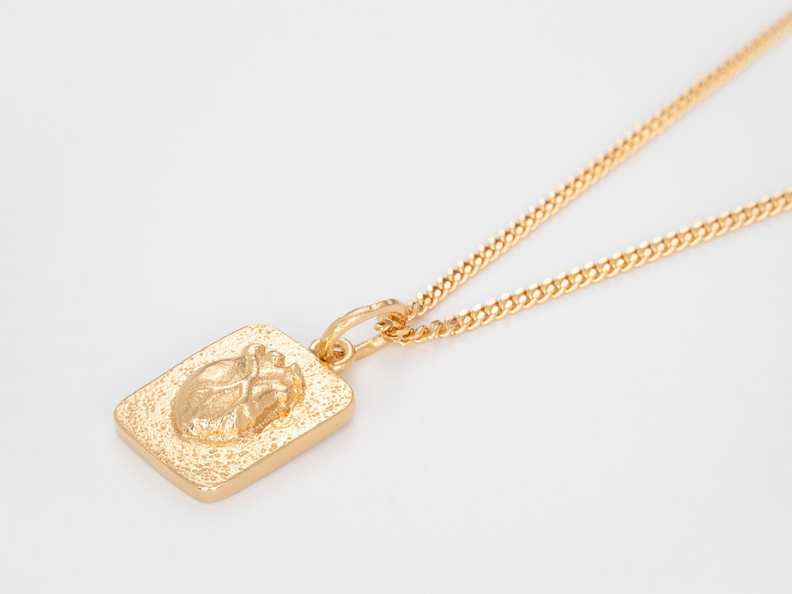 An anatomical heart held in a soft, sculpted frame — a small relic of feeling cast in gold.