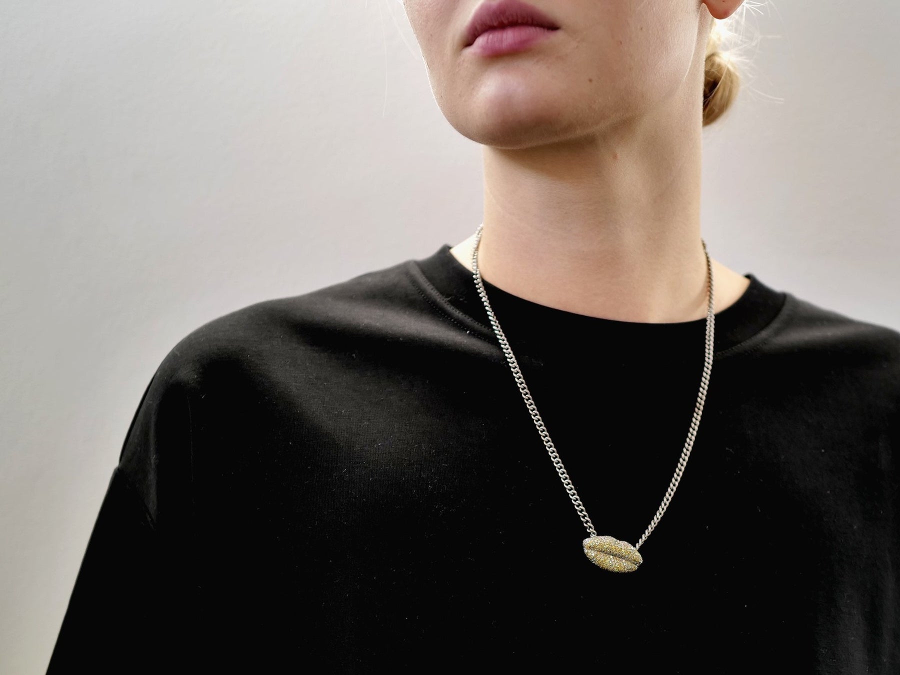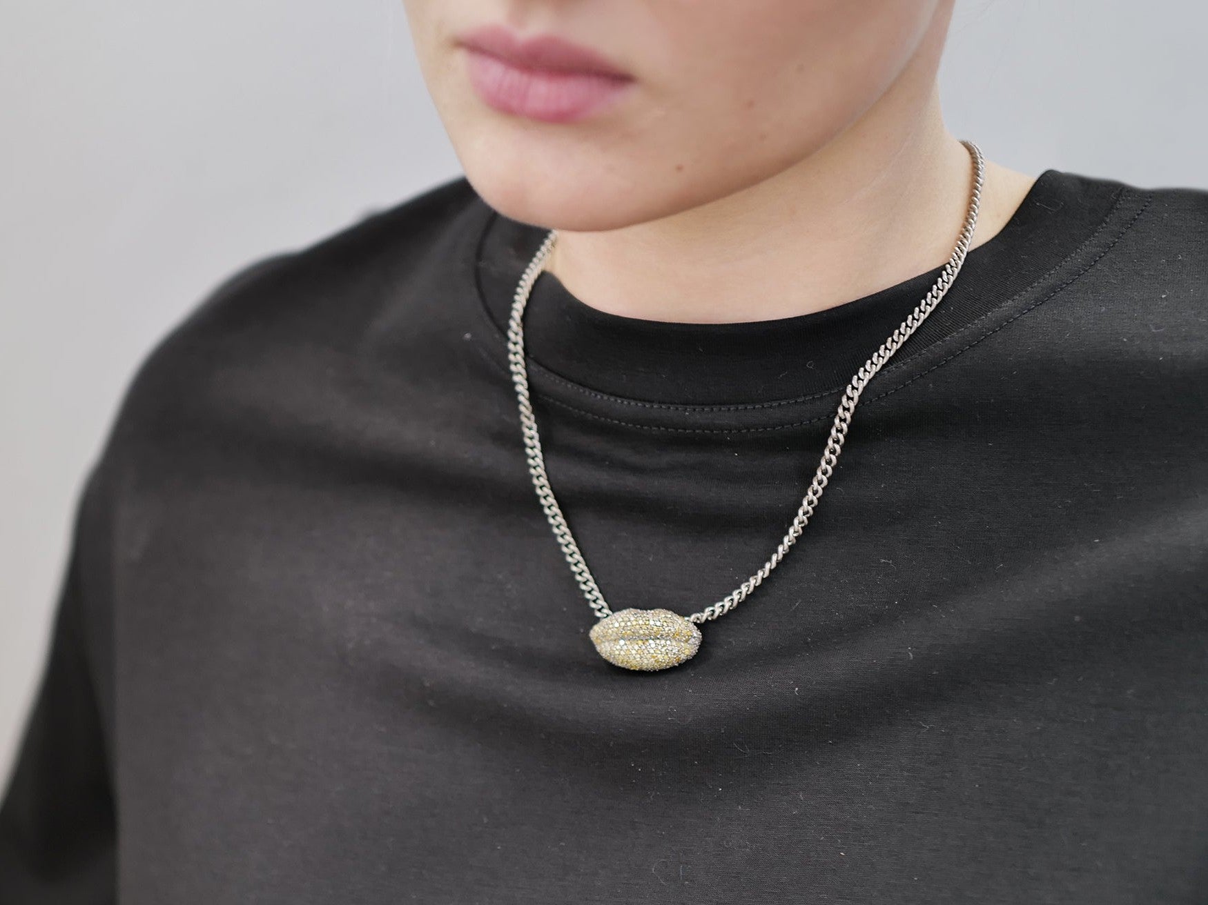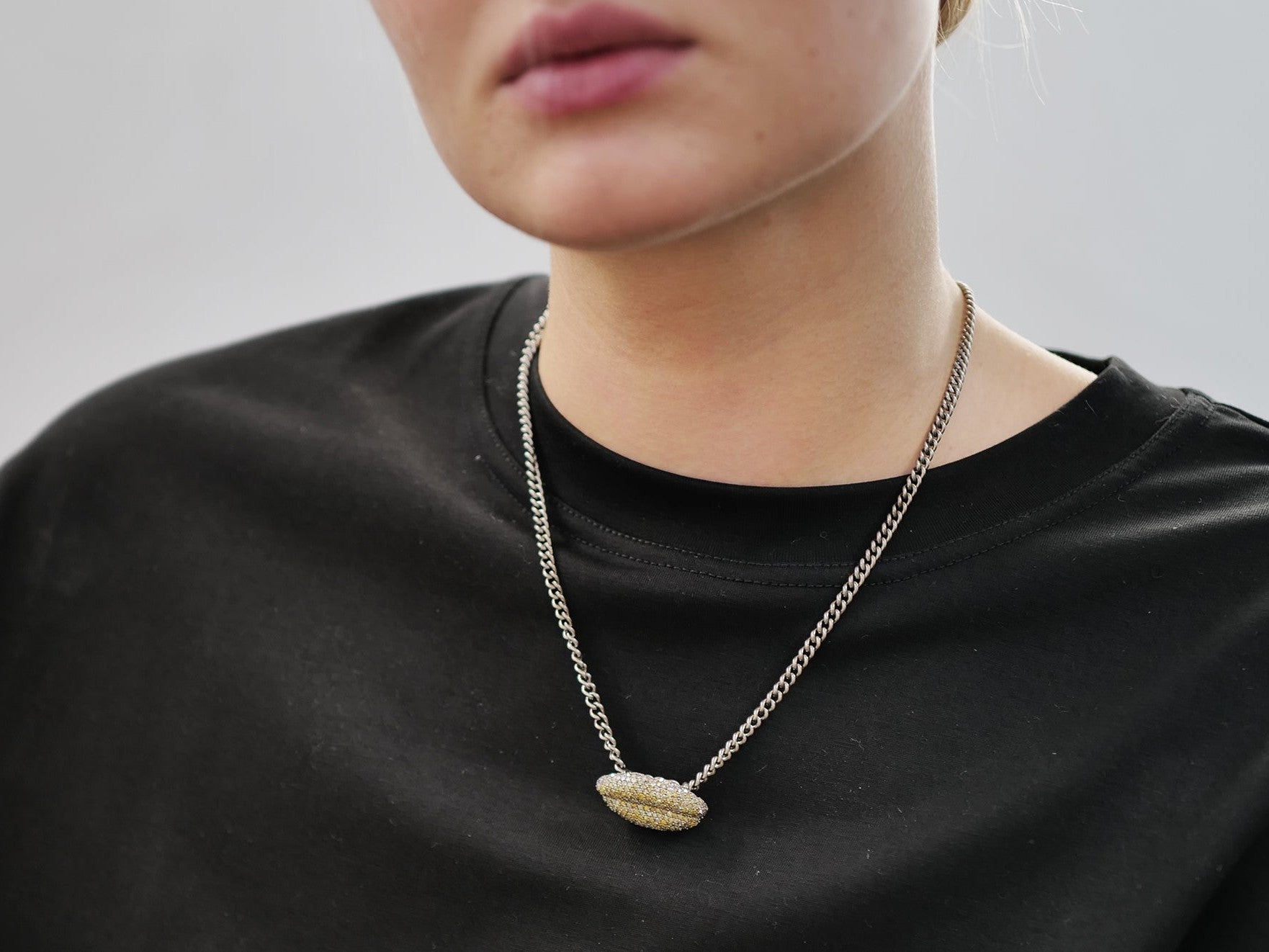 The Yellow Diamond Lips necklace hovers between seduction and restraint, intimacy and power.