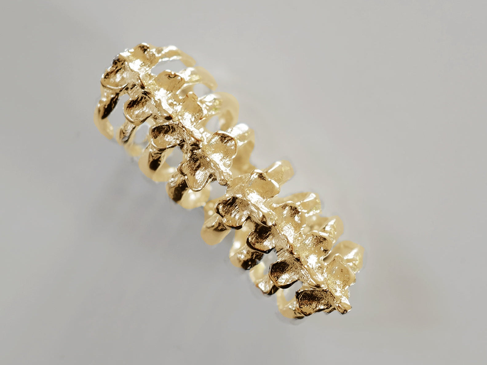The Bjørg Return of Eden Ring is a refined evolution of the iconic human spine design, symbolizing strength, resilience, and the core of human identity. Meticulously crafted to mimic the spine’s natural curvature, it embodies both physical structure and inner fortitude. This polished version balances bold symbolism with timeless sophistication, offering a striking statement of individuality and modern elegance.