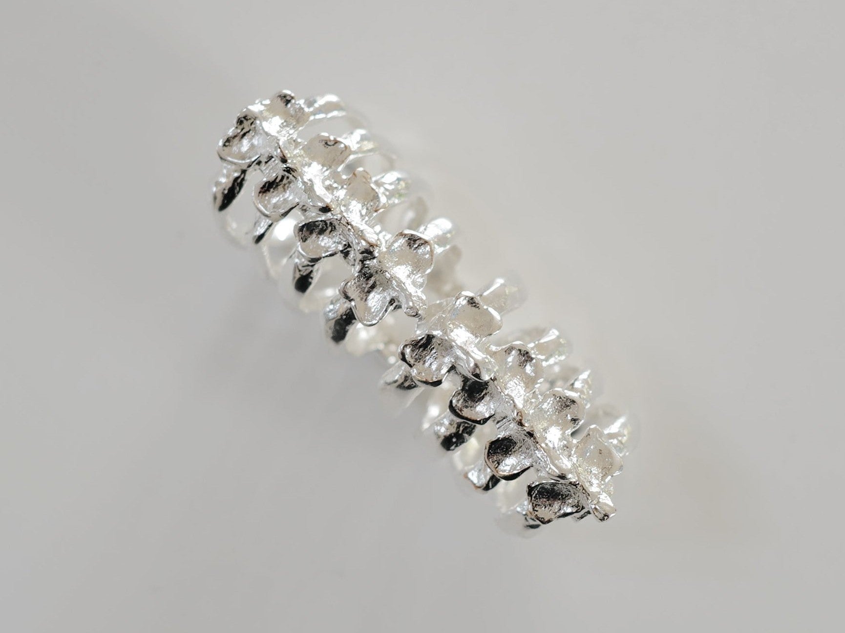 Iconic BJØRG statement ring in true signature style. This elegant, organic and edgy piece is perfect to add timeless attitude to any outfit. Handcrafted in bronze base, and plated in 925 silver. Adjustable size.