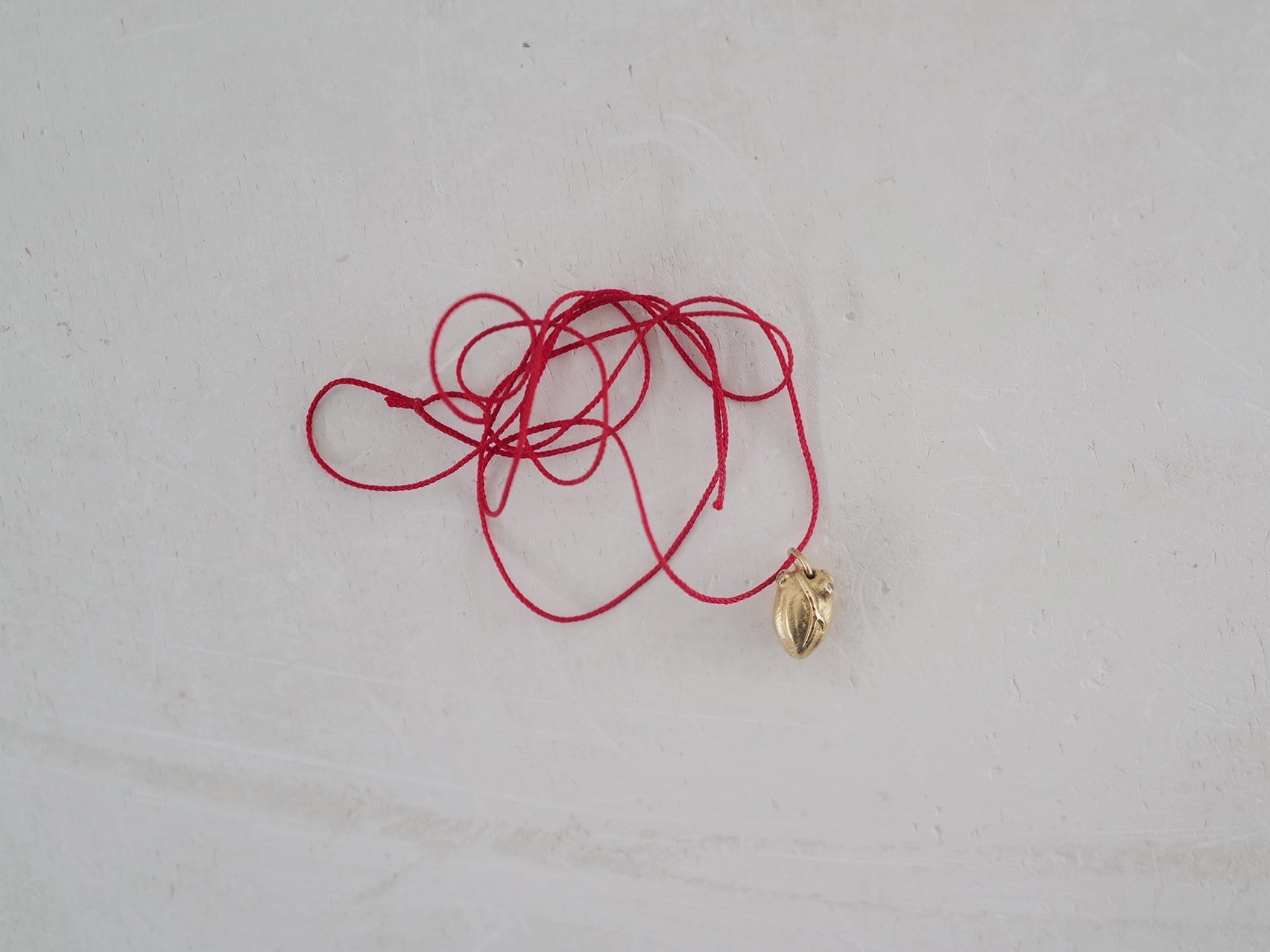 Carried by Japanese red silk, chosen for its strength, softness, and symbolic protection.